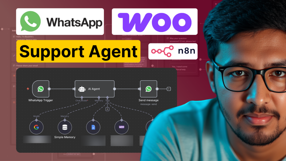 This product provides a JSON file for n8n workflow along with the full prompt of AI Agent for WhatsApp Support Agents on WooCommerce websites. It helps customers check their order status, get answers about refund and cancellation policies, and ask general questions. The workflow. To learn how to integrate WhatsApp actions and triggers in n8n, please watch this video.